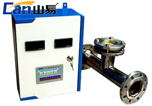铜银离子灭菌器由主机和副机(铜、银电极室)两部分组成。当水流过副机电极室,主机产生的低压直流电能供给副机的电极,电极由两个金属阳极和两个金属阴极组成,电流通过时阳极会产生铜、银离子并扩散到水中,使水得到净化。铜、银离子杀菌功能是由带正电的铜银离子和带负电的细菌细胞相结合,铜银离子穿透细胞壁与细胞内特定部位的DNA及RNA相结合,破坏细菌细胞的蛋白酶和呼吸酶,造成细菌细胞的溶解和死亡。试验证明,0.4mg/L的铜离子和0.04 mg/L的银离子及一定量的其它消毒剂联合使用效果较好。由微型电脑控制器通过控制直流电流的大小来控制产生铜银离子的数量;并设置时间控制极性转换,防止电极不平等消耗,当两电极已完全消耗尽时,更换一对新的电极便可继续使用。